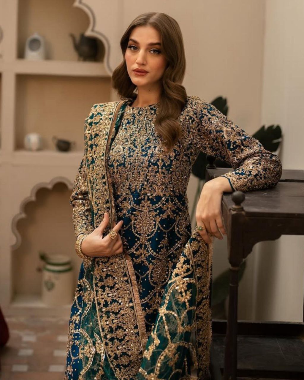Ready To Wear Rama Soft Georgette Embroidery Work Pakistani Suit With Dupatta